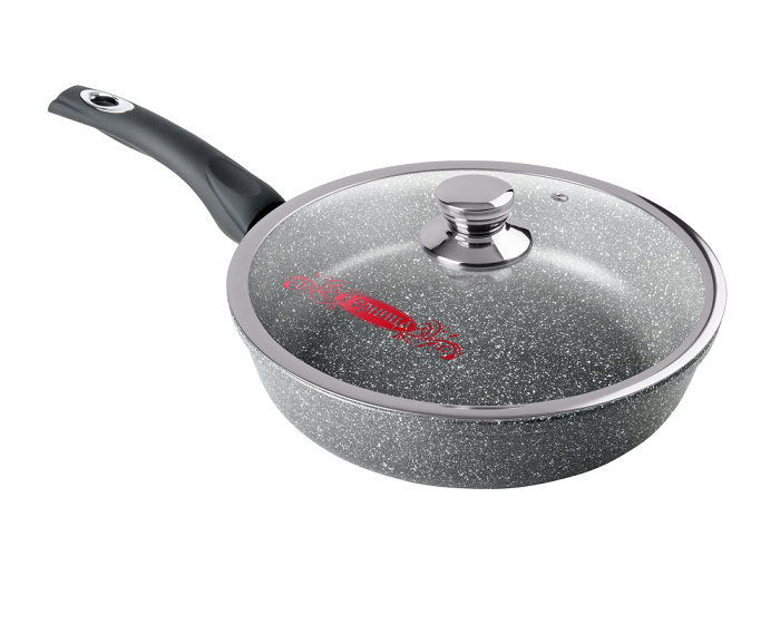 Литая алюминиевая сковорода с антипригарным покрытием подходит для газовых, электрических и стеклокерамических плит. Сковороды со съёмными ручками можно использовать в духовом шкафу. «Графит». Коллекция посуды с улучшенным четырёхслойным антипригарным покрытием. Дополнительный слой с мраморным эффектом увеличивает износостойкость и создаёт оригинальный оттенок серого мрамора.